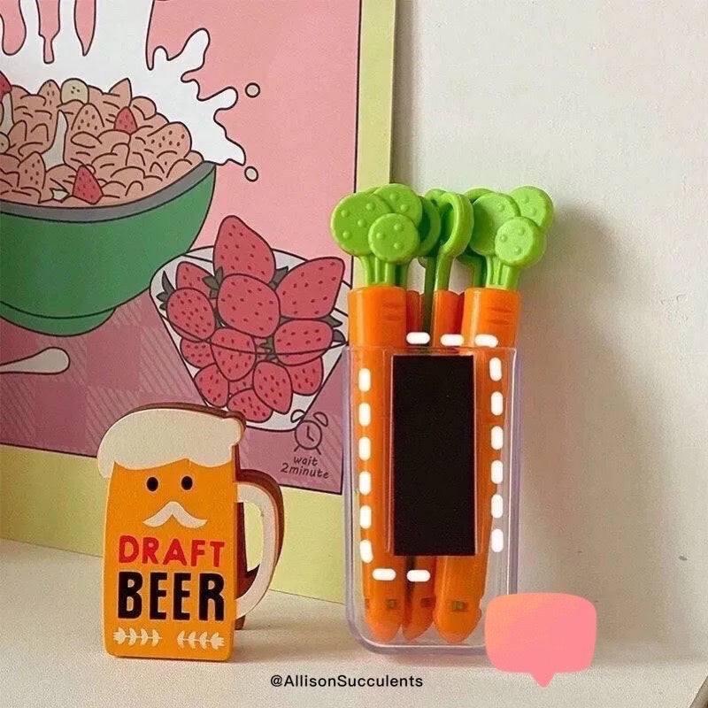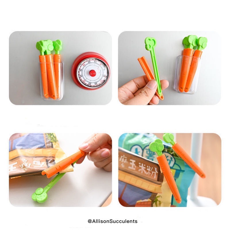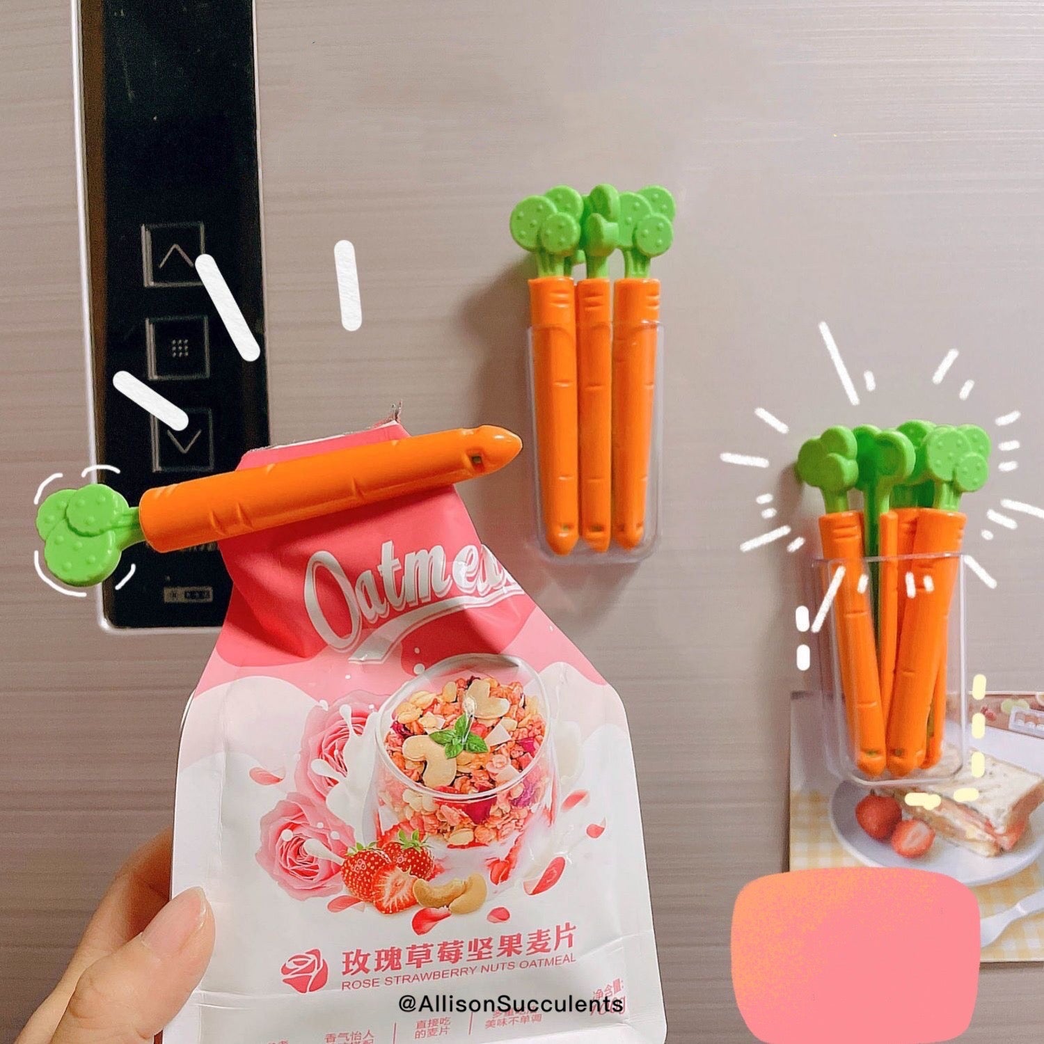 The set includes 5 clips and 1 storage box with a magnet, which can be attached to the refrigerator.