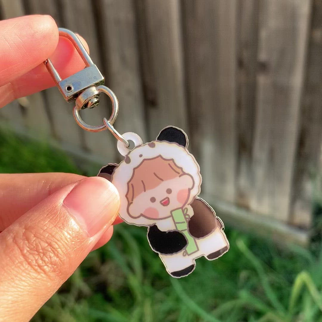 Transparent and lightweight printed thick acrylic sandwich keychain.