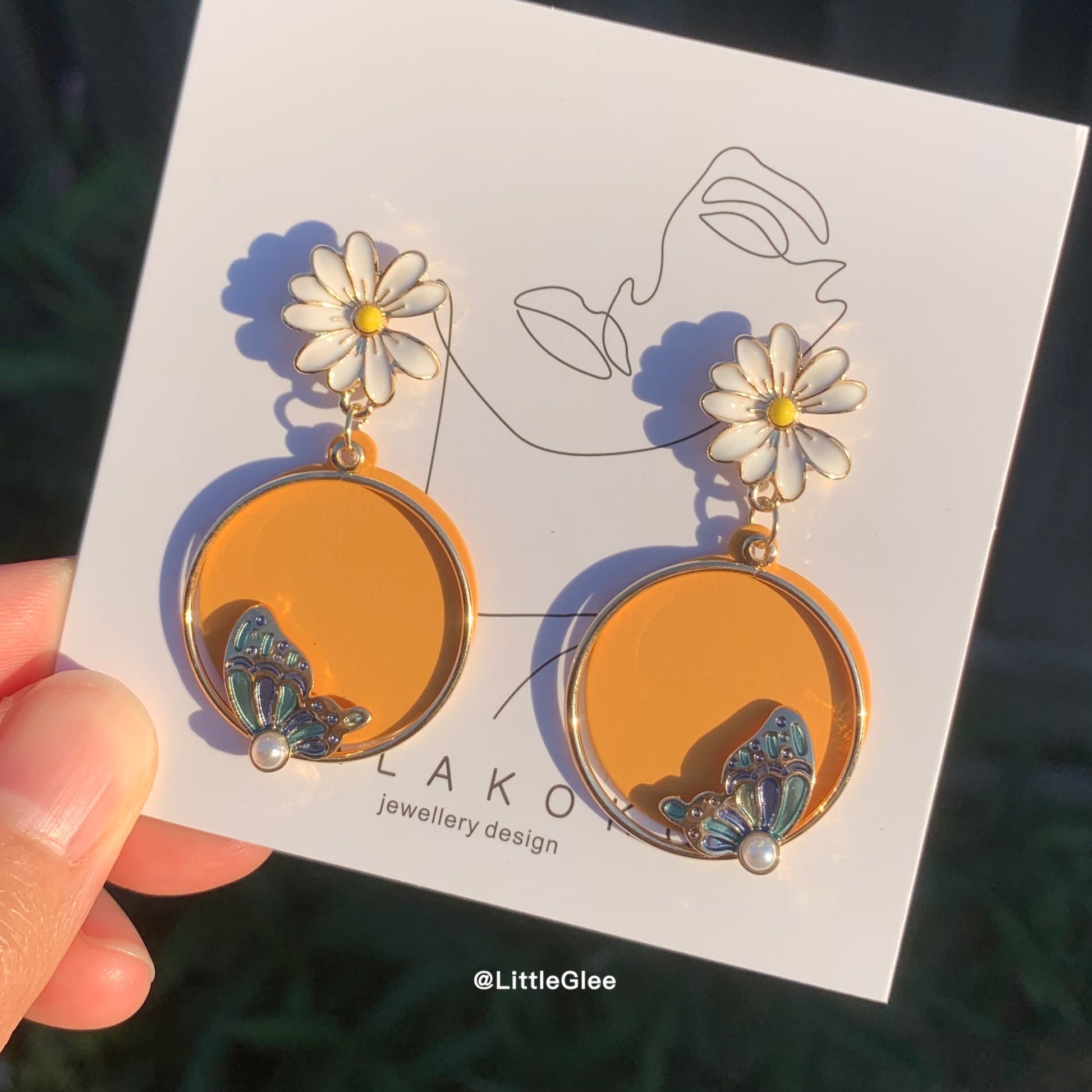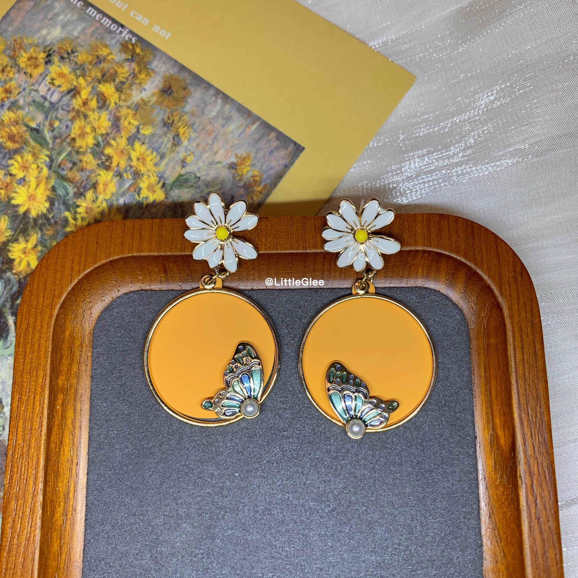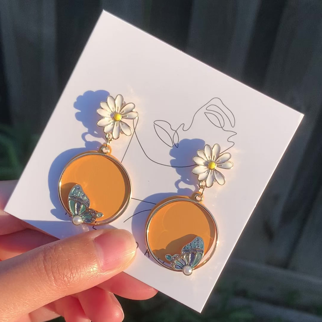 Daisy Butterfly Enamel Replicate Leather Pearls Earrings (S925 Post)