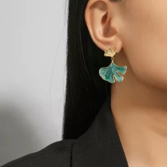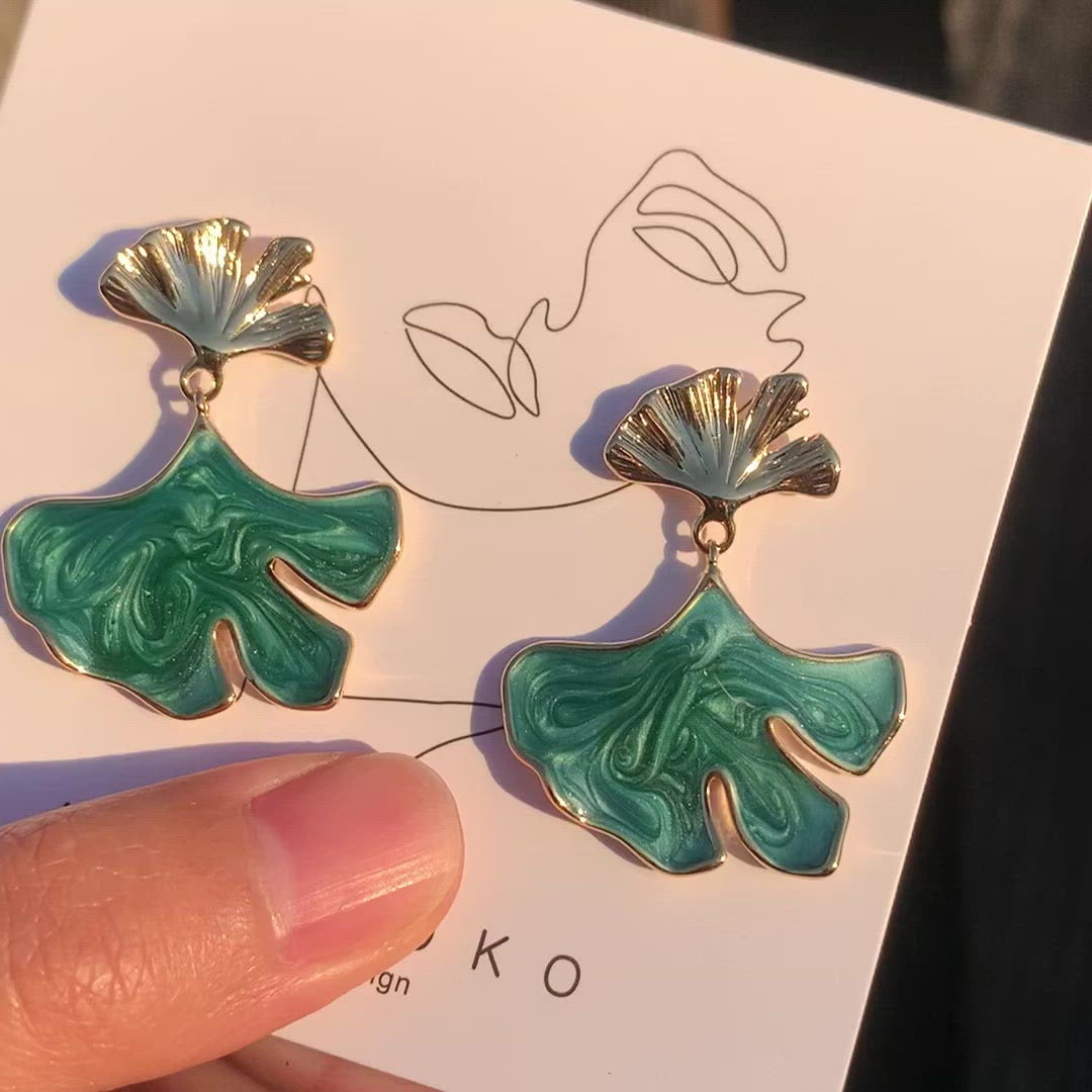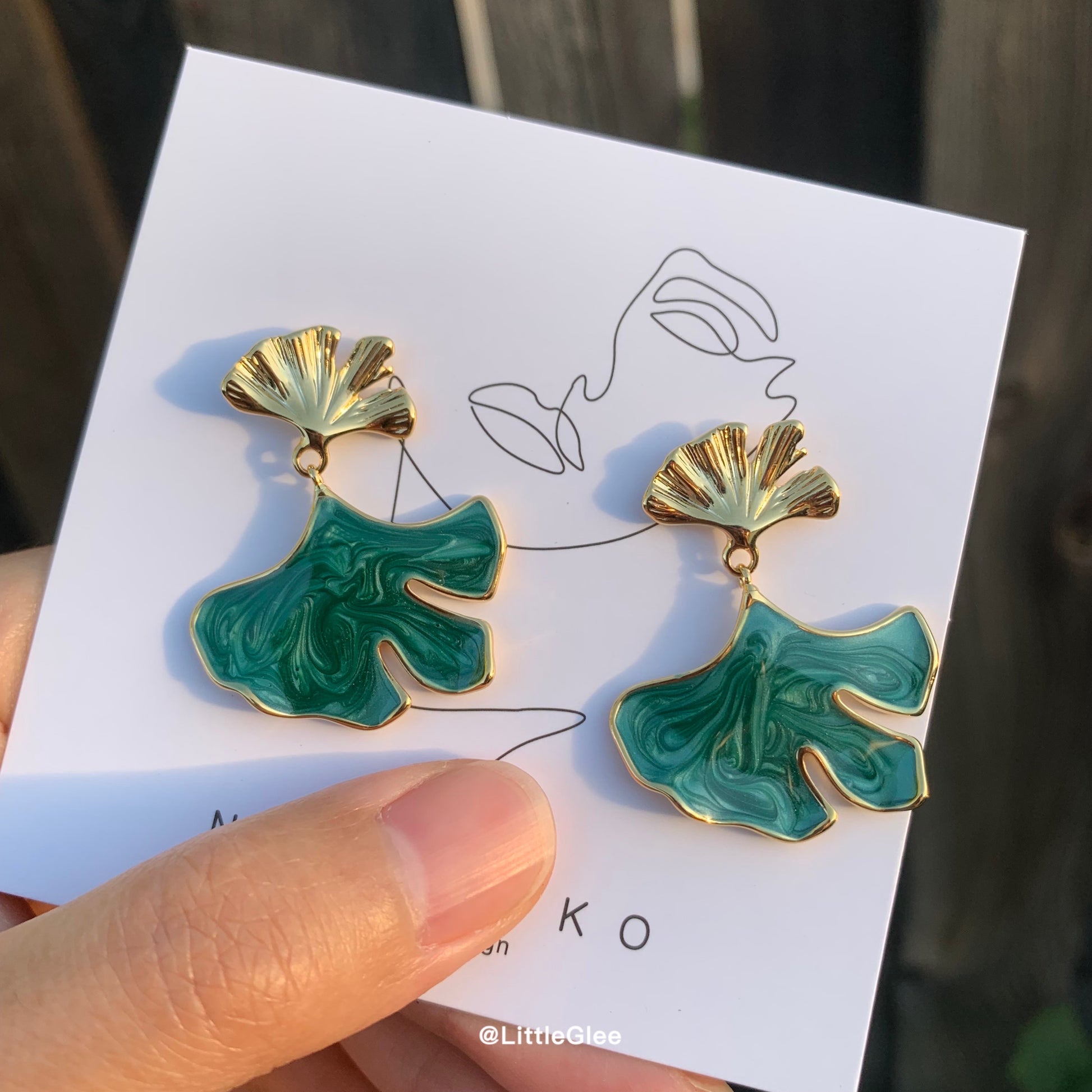 Gingko Enamel Hand Painted Earrings (Alloy With Gold Cover Post)
