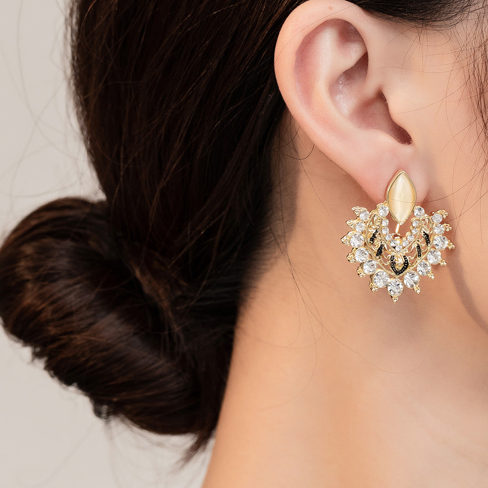 Heart Shape Rose Gold Opal Hallow Earrings (Steel Post)