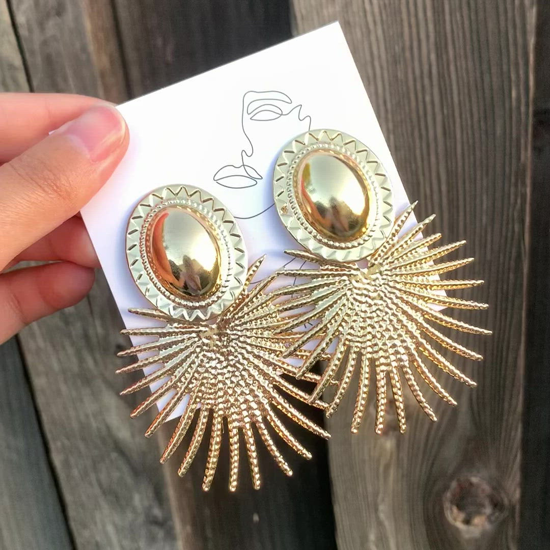 Huge Golden Vintage Titanium Alloy Earrings (Iron Post)