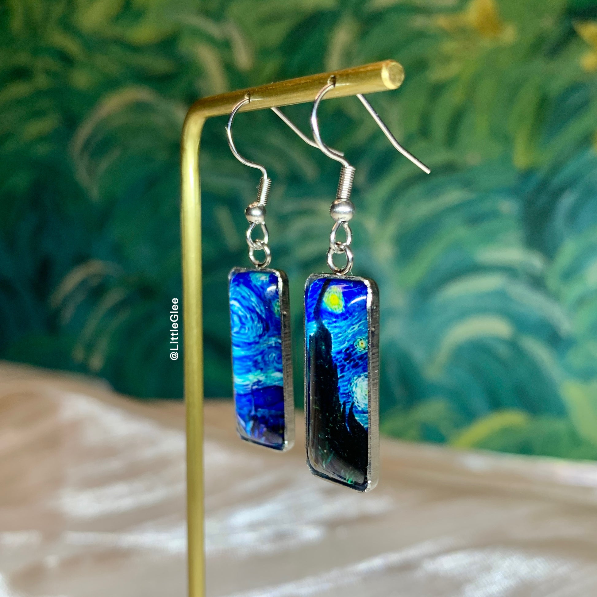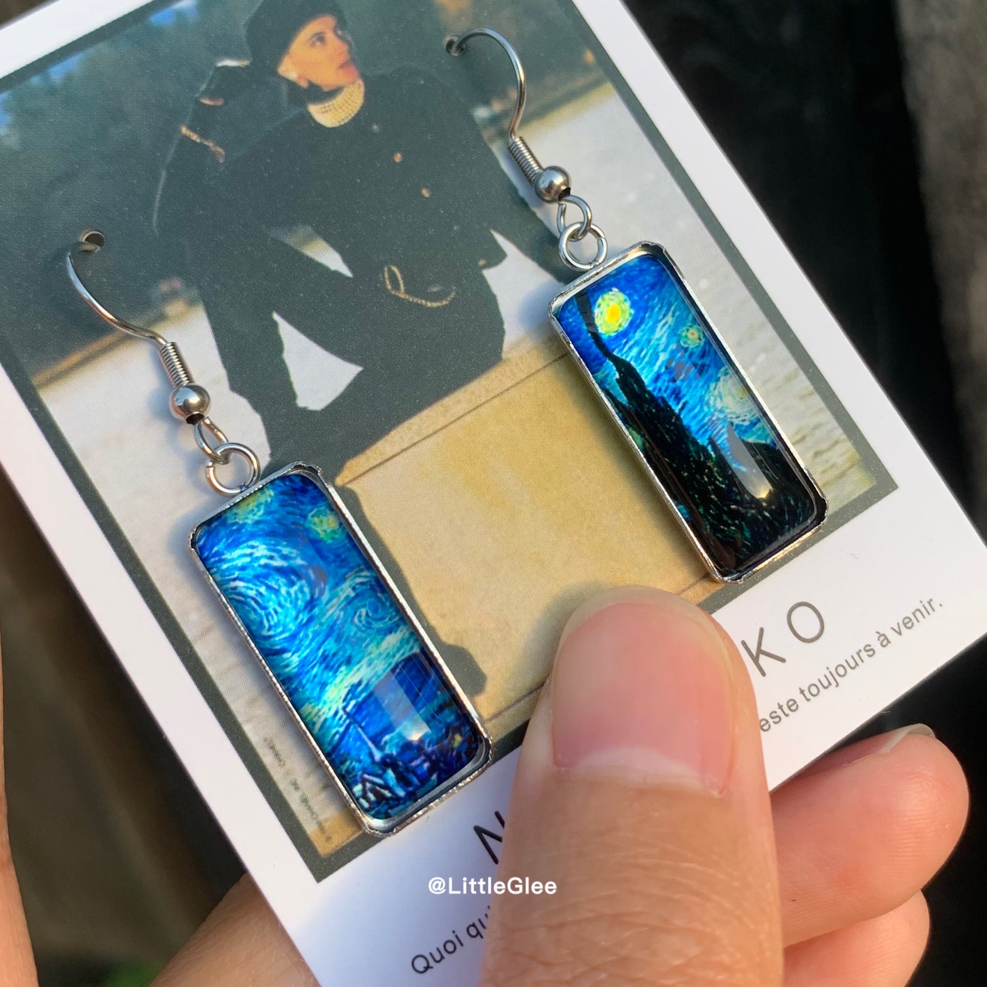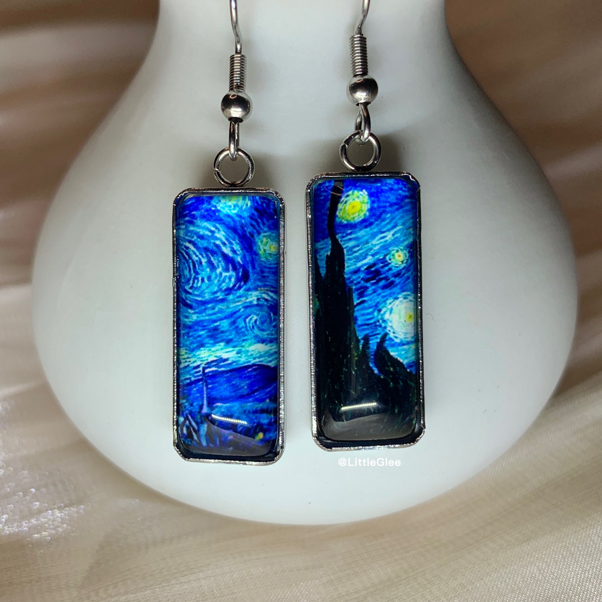 Van Gogh Starry Night Curve Glass Earring (Stainless Steel Post)