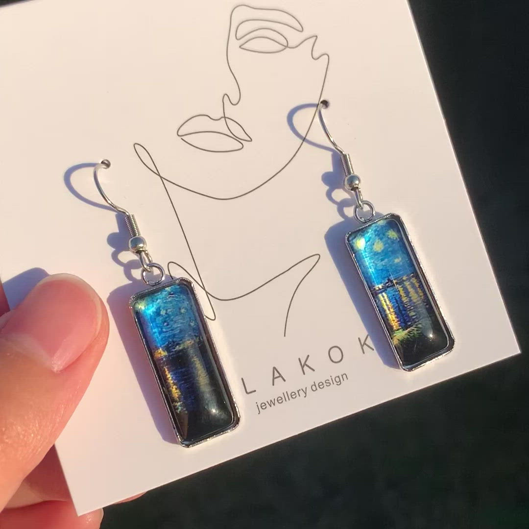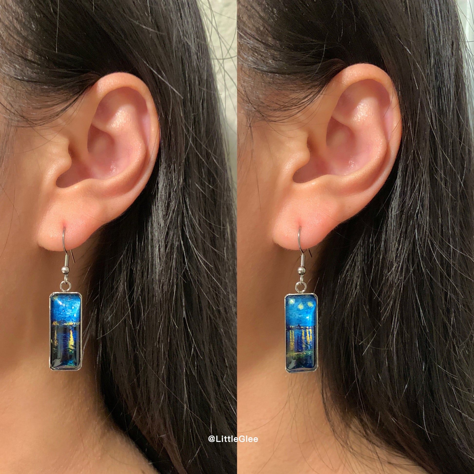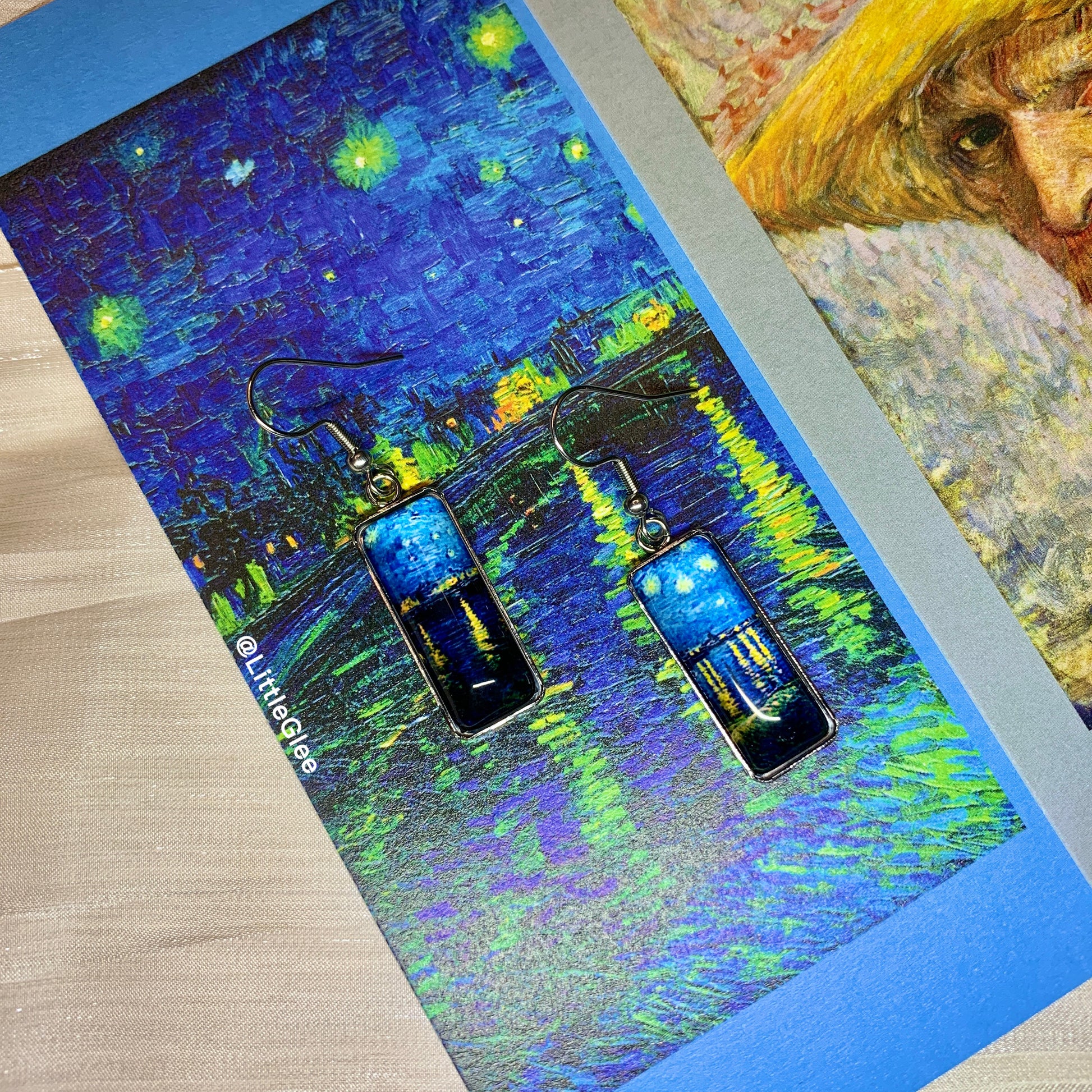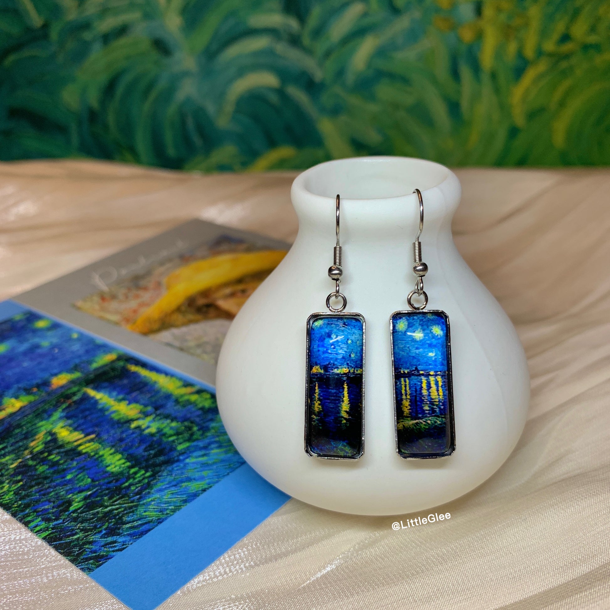 Van Gogh Starry Night Over the Rhone Curve Glass Earring (Stainless Steel Post)