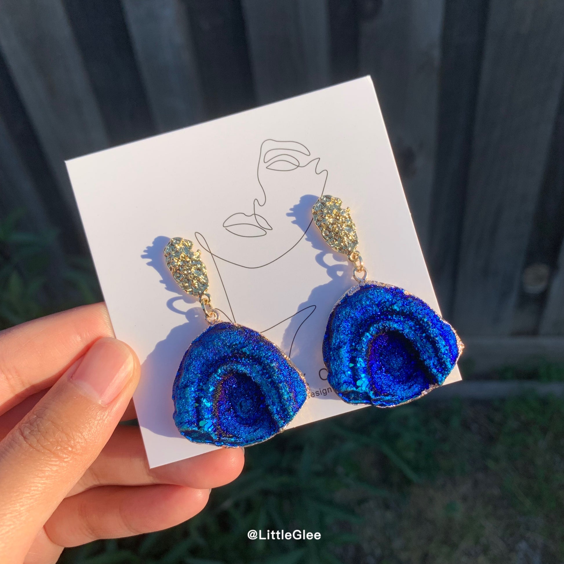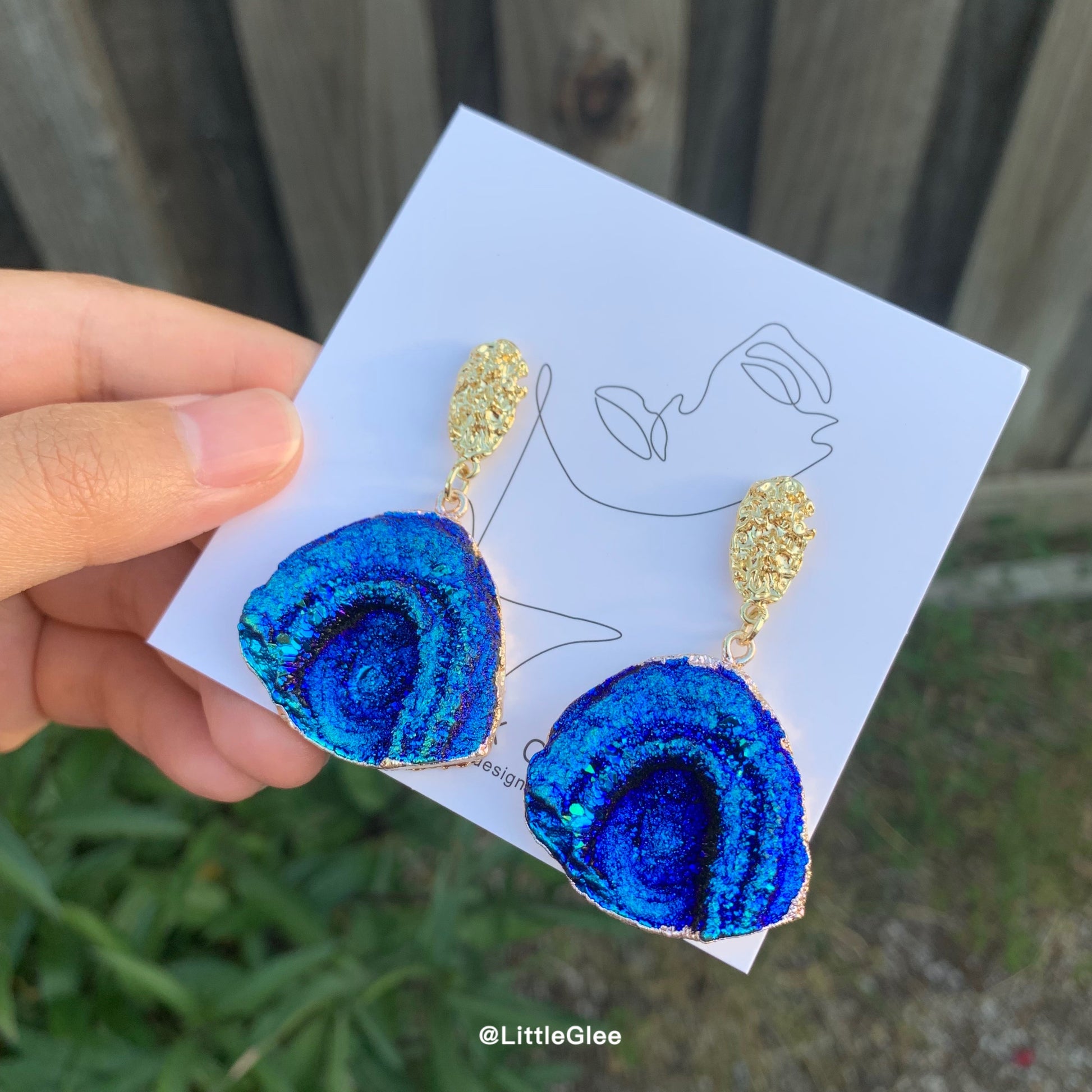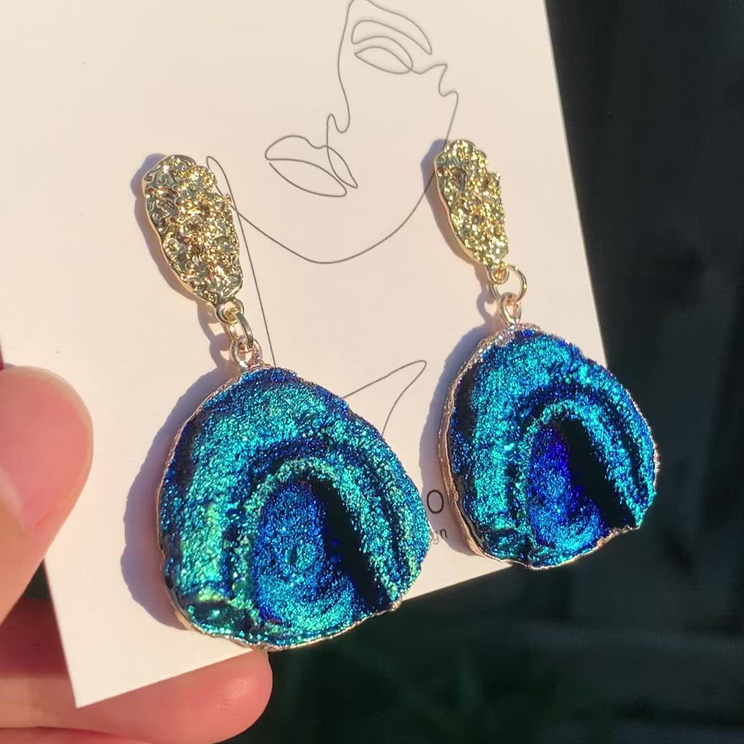 Vintage Blue Imitation GemStone Geometry Irregular Earrings (S925 Post) #Arched
